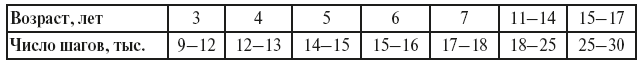 Число шагов, подсчитанных за сутки, неуклонно растет по мере повышения возраста детей (табл. 25). У отдельных 7-летних мальчиков суточное количество шагов может доходить до 20–22 тыс. Понятно, что существующий школьный режим не удовлетворяет этим требованиям. Потребность в двигательной активности в детских садах и начальной школе удовлетворяется примерно на 30–50 %.