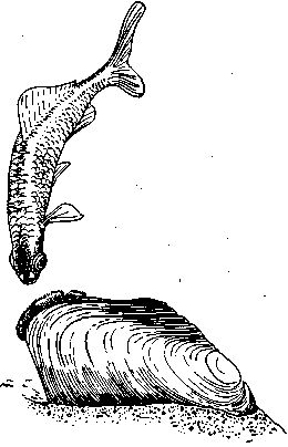 Рис. 36. Самец горчака с раковиной двустворчатого моллюска.