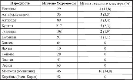 Таблица 1. Y-хромосома звездного кластера среди разных народностей