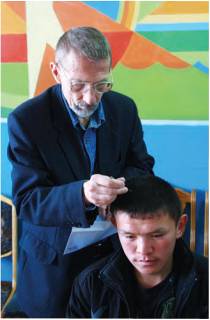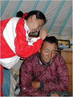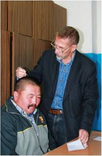 Рис. 7. Взятие пробы волос у жителя Эрзинского района для выделения ДНК