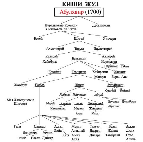 Рис. 136. Родословная: потомки Абулхаир-хана