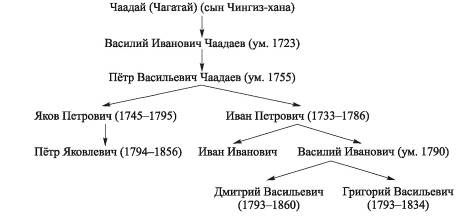 Фамилия «Чегодаев» и ее вариант «Чаадаев» достаточно распространенные. Наиболее известен и знаменит философ (за свои философствования объявленный сумасшедшим) Пётр Яковлевич Чаадаев. Во втором томе его сочинений (Чаадаев, 1991, с. 411) приведена его родословная.