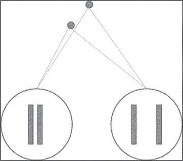 Рис. 34. В отличие от правого глаза, левым глазом мы воспринимаем предметы как менее удаленные друг от друга. И это подтверждает тот факт, что предмет от правого глаза находится несколько дальше
