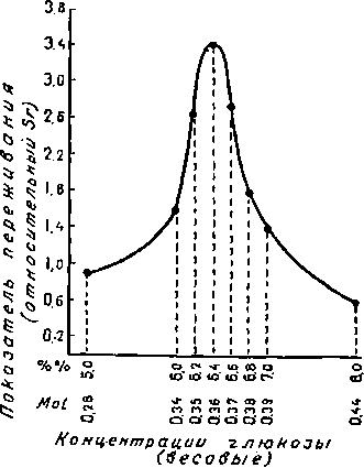 Рис. 38. Кривая падения жизнеспособности спермы при изменении осмотического давления (по Милованову).