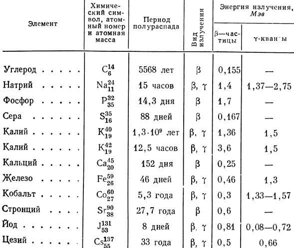 Таблица 1. Радиоактивные изотопы, применяемые при биологических исследованиях