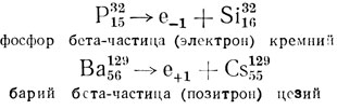 Примером бета-распада служит распад радиоактивных изотопов фосфора и бария:
