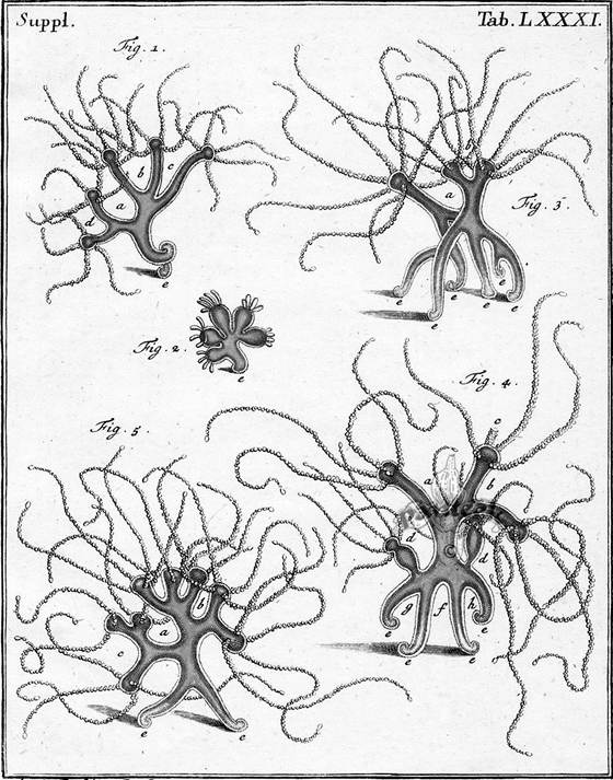 Наблюдениям Пейссонеля не верили до тех пор, пока не появились сообщения о наблюдениях и опытах Трамблэ над пресноводной гидрой. Собственно еще Левенгук открыл гидру (1703), но он назвал ее по своему обыкновению просто «зверьком», хотя и снабдил очередное письмо Королевскому обществу плохоньким рисунком. В том же году и в трудах того же Королевского общества была напечатана небольшая анонимная статейка какого-то англичанина о гидре, тоже с рисунком и тоже без названия животного. Это было все, что знали о гидре, когда она попала на глаза Трамблэ.