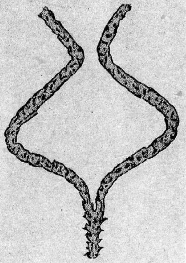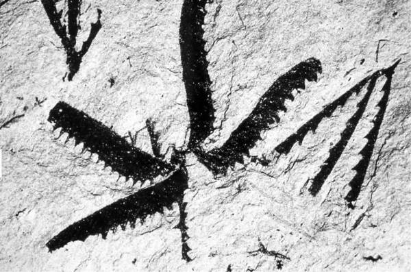 Изображение граптолита Dicranograptus ziczac, в несколько раз увеличенное по сравнению с реальным размером