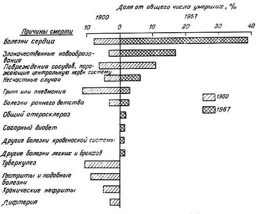 Рис. 1.4. Основные причины смерти людей в США в 1967 г. по сравнению с 1900 г. [2]