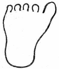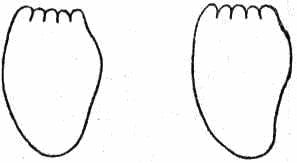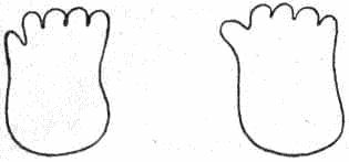 Теперь нам легко понять, откуда пошли слухи о «вывернутости» лап таинственного пендека. Дело в том, что малайский медведь может свободно переходить на «вывернутую» поступь, то есть выворачивает пятки наружу. Правда, разворот ступни недостаточно силен, чтобы отпечатки следов создавали иллюзию полноценного шага. Я думаю, что дело все-таки в следующем: мизинец медведя шире его большого пальца, поэтому его следы кажутся следами человека с развернутыми ступнями.