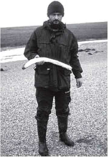 Рис. 29. С. Л. Вартанян с бивнем мамонта на о. Врангеля.