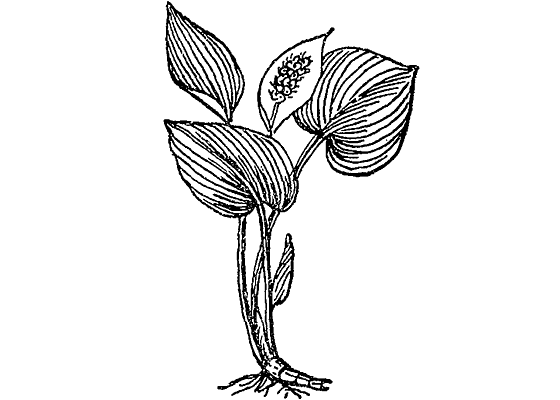 Цветет белокрыльник в первой половине лета. Узнать его легко: мелкие цветочки собраны в большой толстый колос-початок. Початок наполовину окружен словно широким чехлом: белый изнутри, зеленый снаружи, он похож на огромный лепесток. Этот чехол-лепесток — примета, его видно издали.