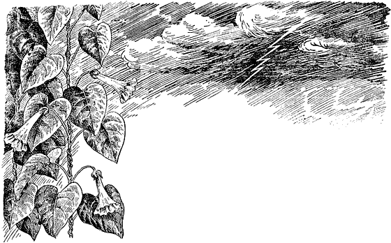Клевер перед продолжительным ненастьем опускает свои тройчатые листочки. Одуванчик складывает, как зонтик, свой пушистый шарик. По пяти бороздкам сжимает свои розовые венчики полевой вьюнок.