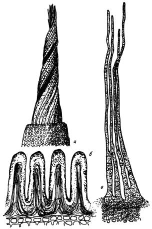 Для полноты хотя бы и очень краткой характеристики перистома необходимо добавить, что поверхность его зубцов (простого или наружного перистома в случае, если он двойной), отростков, ресничек, основной перепонки — словом, всех частей очень редко бывает совершенно ровной, гладкой. Наоборот, почти всегда это сплошные бугры и впадины, выпуклости и вмятины, очень разнообразные по форме и размерам, но все микроскопически мелкие. Некоторые из этих «шероховатостей» видны лишь в сканирующий электронный микроскоп. Заметим попутно, что использование сканирующего микроскопа в бриологии показало наличие у мохообразных очень сложных и чрезвычайно разнообразных поверхностных структур не только перистома, но и листьев и спор. Многие из этих структур имеют, как выясняется, определенное значение с систематической точки зрения.