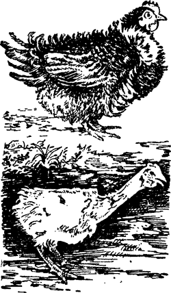 Курчавая курица — гомозигота (вверху) и гетерозигота (во время линьки).