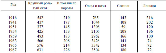 Таблица 8.13 Динамика поголовья скота в Читинской области (по всем категориями хозяйств), на 1 января, тыс. голов [Восточное…, 1968]