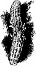 Из некоторых гусениц вдруг начинают выползать, пробуравливая кожу, маленькие личинки. Беленькие, они похожи на крохотных червячков. Они не уползают от гусеницы, а тотчас же плетут вокруг себя желтые кокончики. Их много, несколько десятков.