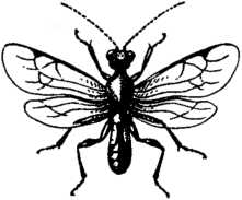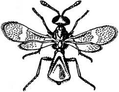 И вдруг — «сюрприз». Вместо бабочки из куколки выползает насекомое с четырьмя узенькими пленчатыми крыльями. Иной раз даже с тонким длинным «хвостом» или с чем-то вроде шила на конце брюшка. Бывает и так, что выводится… муха. Ну, совсем как обычная комнатная муха! Только покрупнее да усажена какими-то жесткими щетинками.