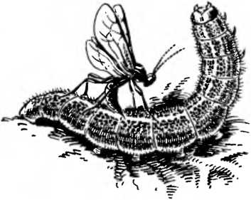 Нападающие на гусениц всегда гораздо проворнее и пугливее тех, которые нападают на куколки. Не так уж трудно догадаться о причине этого: куколка никакого вреда нападающему на нее наезднику причинить не может, яйца и подавно. А гусеница? Она не только изгибается на все лады, но и выпускает изо рта зеленую пену, только что не плюет ею. Нужно и увертываться от несущей гибель пены, и суметь вскочить на изгибающуюся гусеницу, суметь удержаться на ней, успеть отложить яйцо или яйца.