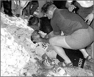 Велогонка Тур-де-Франс, 1967. Тонни Симпсон скончался на трассе на глазах миллионов телезрителей от передозировки стимулирующих препаратов
