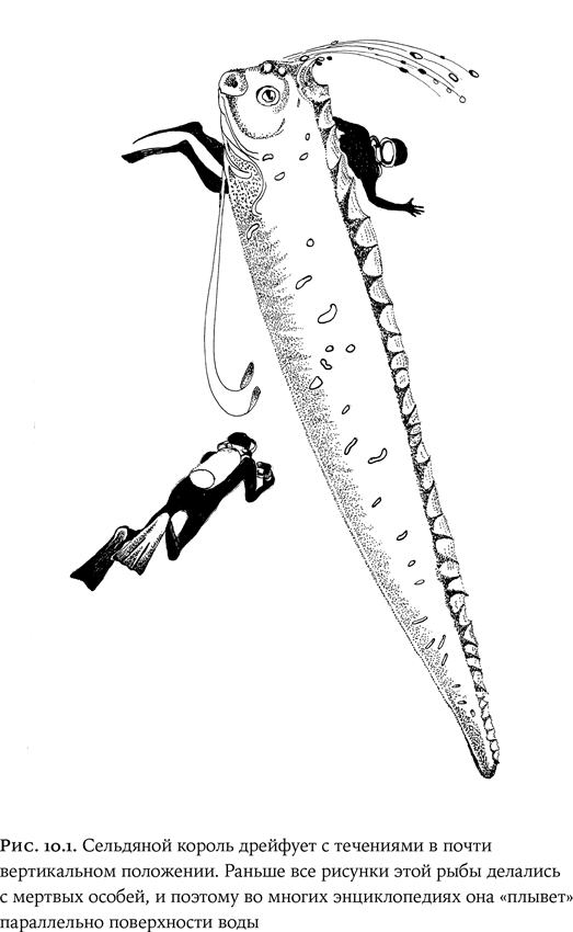 Глубоководные рыбы часто выплывают на поверхность перед самым землетрясением. Так, перед землетрясением 1933 г. в сети рыбаков стали попадаться целые стаи морских угрей, обычно живущих на глубинах от 500 м до 2–3 км. Несколько последних месяцев перед землетрясением 2010 г., разрушившим атомную электростанцию Фукусима, японские рыбаки с удивлением вылавливали сетями сельдяного короля, или ремень-рыбу. Это очень странная рыба, невероятно длинная (самая большая измеренная особь достигала в длину 11 м, но, по непроверенным сведениям, бывает и до 17 м) и сплющенная с боков, как лента, к тому же украшенная высокой ярко-рыжей «короной» на голове из первых лучей спинного плавника. Она часто плавает в косяках сельди, но выше 200 м поднимается крайне редко, а в тех случаях, когда показывается на поверхности, люди порой принимают ее за «морского змея». Именно эти сельдяные короли вдруг появлялись на поверхности моря и перед чилийским, и перед тайваньским землетрясениями 2010 г. Согласно японским легендам, сельдяные короли всплывают специально, чтобы предупредить о надвигающемся землетрясении.