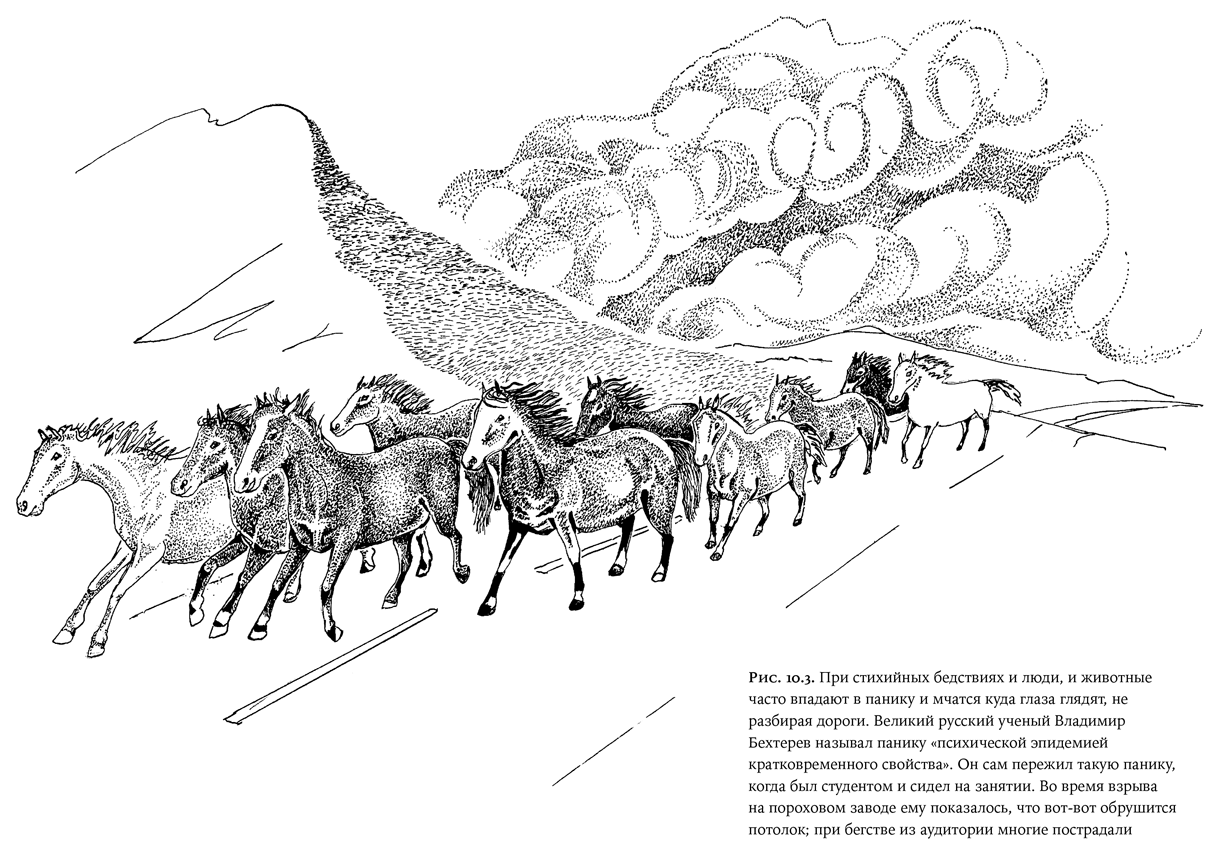 Так что не один только Топсик впал в панику и спасался бегством. Перед неистовством природы человека нередко охватывает первобытный страх. Вот свидетельство очевидца крымского землетрясения, военврача, прошедшего через множество военных кампаний и представленного к ордену за храбрость: «У меня пропало мужество: забыв абсолютно всех и все, я вылетел в коридор, дальше – к лестнице и с десятками людей очутился, в чем и как попало, на улице… Те 8–10 секунд – это был панический ужас, это было страшнее смерти». Животные тоже его не чужды, но разница между нами в том, что нас паника полностью дезорганизует и лишает возможности целенаправленно действовать во имя спасения, животных же, как правило, предчувствие беды заставляет спасаться бегством, и, как видим, весьма успешно. Впрочем, наших собак мы порою так очеловечиваем, что они теряют природные инстинкты и, впадая в панику, пропадают. В самом прямом смысле. Вспомним множество собак, ударяющихся в паническое бегство при звуках фейерверков в новогодние праздники. Но ведь при грозе, обычном природном явлении, гром гремит страшнее, чем звуки хлопушек! Впрочем, многие собаки и грозы страшно боятся, прячутся, прыгают в ванну и там замирают… Более адаптивный и выгодный для выживания путь – прижаться к хозяину, забраться в его постель, он защитит!