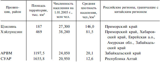 Таблица 13.2 Население и территория регионов Китая, граничащих с Россией