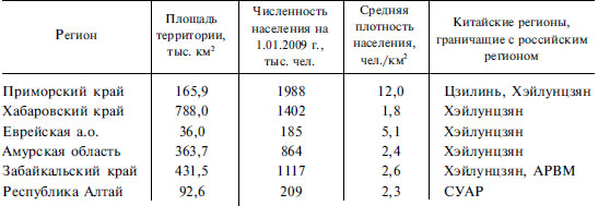 Таблица 13.3 Население и территория регионов России, граничащих с Китаем