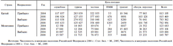 Таблица 13.5 Численность граждан Китая и Монголии, совершивших поездки в Российскую Федерацию в 2001–2008 гг. (по данным Федеральной пограничной службы)