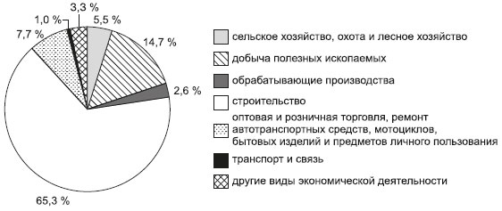 Рис. 13.6. Структура экономической деятельности иностранной рабочей силы в Иркутской области в 2007 г.