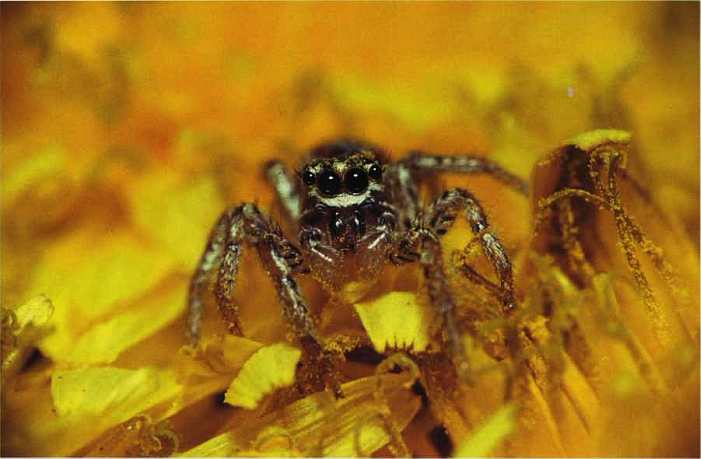 Пауки-скакуны семейства Salticidae известны своей способностью прыгать на большие, сравнительно с размерами их тела, расстояния. Это помогает им не только охотиться, но и скрываться от опасности.