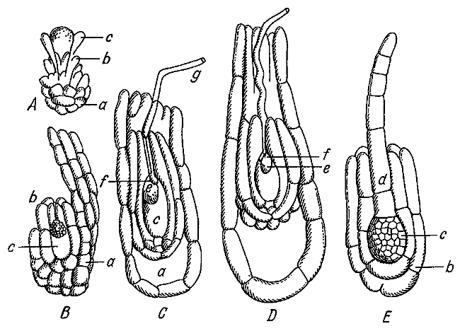 Несколько позже, в 1846 г, с опровержением взглядов Шлейдена на развитие зародыша из конца пыльцевой трубки на основании собственных эмбриологических исследований хвойных выступил известный русский ботаник Л.С. Ценковский.