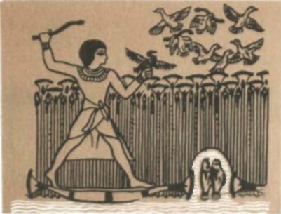 На одной из египетских фресок, которая была выполнена на стене некрополя Менна и относится к периоду XVIII династии (около 3 тысяч лет до н. э.), изображена сцена охоты. Въехавший на челне в тростниковые заросли охотник держит в руке баклана, а в поднятой другой руке — оружие, напоминающее бумеранг. Баклан кричит и на его крик слетается очень много птиц, большинство которых утки. Судя по всему, баклан был взят не зря: охота удачная, головы двух птиц безвольно опущены.