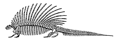 Лапы пеликозавров уже не отходил и от тела горизонтально в стороны, как это было у всех предков от кистеперых рыб до амфибий (и как это есть у нынешних ящериц и крокодилов). Они уже отходили от плечевого пояса и таза несколько вниз, хотя и не прямо, под углом. Четвероногие переставали ползать и начинали ходить по-настоящему! Этот пеликозавр, эдафозавр, интересен тем, что попытался задолго до изобретения теплокровности оригинально решить проблему терморегуляции. Парус на спине, повернутый к солнцу плашмя, быстро разогревал сутра тело животного, а в полдень, повернутый к солнцу ребром, или в тени, позволял сбрасывать излишки тепла, предохранял от перегрева.