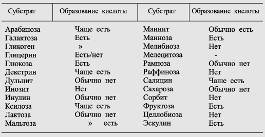 Таблица 11. Ферментация чумным микробом некоторых углеводов [Домарадский И. В., 1971]