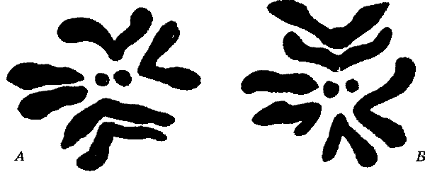 Набор хромосом дрозофилы: А — самки; Б — самца