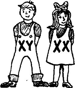 Теперь нетрудно догадаться, как решается вопрос о том, какой организм разовьется из оплодотворенной яйцеклетки — мужской или женский. Пол зародыша определяется в момент оплодотворения. Если яйцеклетку оплодотворит сперматозоид, несущий Х — хромосому, то в каждой клетке тела зародыша будет две женские Х — хромосомы и разовьется девочка. Другое дело, если яйцеклетку оплодотворит сперматозоид, несущий мужскую Y — хромосому. Тогда в каждой клетке развивающегося зародыша будут разные половые хромосомы — «X» и «Y» и зародыш будет мужского пола.