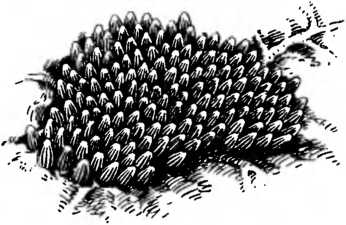 Три-четыре раза в минуту прикасается конец брюшка к листу, и каждый раз появляется новое яйцо. Капустница откладывает их одно возле другого; образуется кучка яиц, «бляшка», как говорят. Яйца «стоят» на листе, и каждое из них приклеено капелькой липкой жидкости, выступающей из брюшка бабочки перед откладыванием яиц.