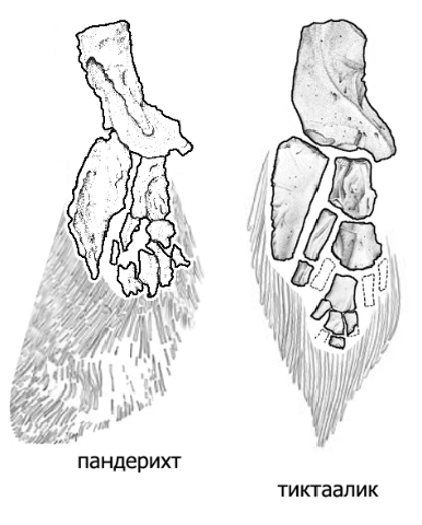 Более точные рисунки передних конечностей пандерихта и тиктаалика (предоставил А.Н.Кузнецов).