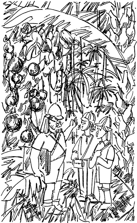 Когда знакомишься с тропическими деревьями, растущими у себя на родине, а не в оранжерее, то порой замечаешь у них, как говорят ботаники, новообразования — всяческие отклонения отдельных органов от нормальной формы. Очень часто виной тому — насекомые. Сплошь и рядом можно наблюдать, скажем, такую картину. Вот в редкой траве между обнажившихся корней вьется цепочка муравьев-листогрызов. У каждого в челюстях — кусочек листа, чуть не втрое превышающий размеры носильщика. Кажется, будто маленькие лодки с зелеными парусами лавируют между травинками. А ведь это настоящий грабеж: в короткое время листогрызы способны полностью «раздеть» дерево. Другие муравьи проникают внутрь ствола, веток, черешков и даже в мясистые пластинки листьев, поселяясь здесь надолго и всерьез и превращая дерево в живой муравейник.