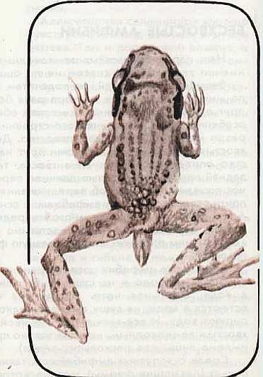 Семейство Липовые. Если за малоподвижный, не «лягушачий» язык жерлянок и ее близких родичей назвали круглоязычными, то представителей этого семейства следовало бы, наверное, назвать безъязычными: у них вообще нет языка. Зато у некоторых есть коготки, что для бесхвостых земноводных большая редкость. Не случайно немцы называют этих лягушек когтистыми. Но общепризнанное их название — шпорцевые лягушки.