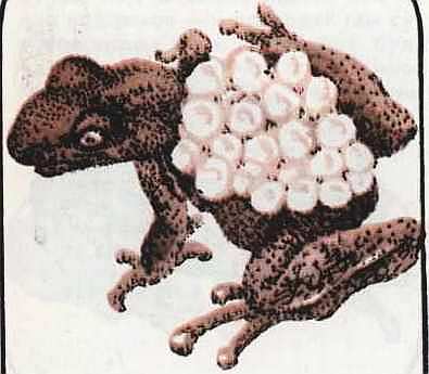 Самый крупный и самый знаменитый представитель этого семейства — пипа суринамская. Она хоть и называется суринамской, встречается не только в Суринаме (Гвиана), но и в бассейнах рек Ориноко и Амазонки, в Перу и в Бразилии. И всюду ее хорошо знают местные жители. Европейцы тоже знают ее давно — еще два столетия назад путешественники рассказывали о необыкновенном существе, у которого детишки рождаются прямо из спины. Конечно, самое замечательное у пипы — ее забота о потомстве (об этом мы уже говорили). Но и сама она достаточно интересна.