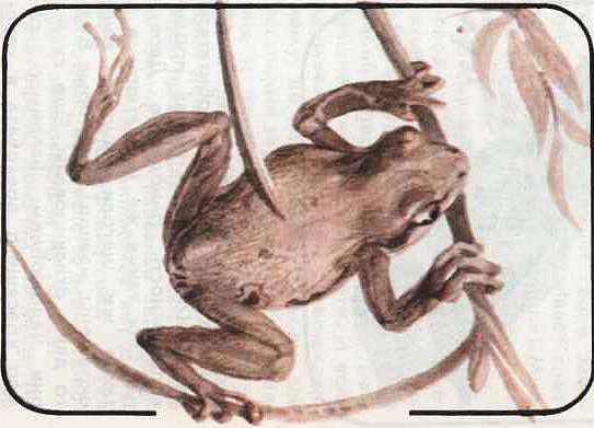 Среди веслоногих есть и такие, ноги которых не назовешь «веслами» даже при всем желании. Скорее их хочется назвать «руками»: пальцы посажены так, что могут сжиматься в кулачок. Это очень помогает им лазать, обхватывая тоненькие веточки и прочно на них держаться. Поэтому лягушек — так и назвали — хватающими. И ни с какими другими их не спутаешь, потому что только у них такие пальцы, такая вполне обезьянья манера лазать по деревьям.