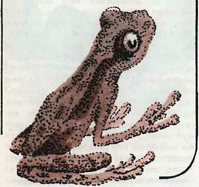 Семейство Квакши. Возможно, название это многочисленное (около 500 видов) семейство получило за «голосистость»: его представители квакают, крякают, кричат, поют, свистят и «лают», даже «рычат» и пищат. И многие, кто бывал на юге нашей страны, могли (или еще смогут) убедиться в этом. С темноты и до зари, на протяжении всего теплого времени года, раздается их громкое, похожее на утиное кряканье, «пение». В сентябре — октябре квакши перестают петь, забираются в укромные места — в щели, в дупла, под опавшие листья или на дно водоемов — и проводят там суровое время года. А в апреле, будто устав от молчания, грянет многоголосый хор самцов. Весной они поют у водоемов, где вскоре самки отложат яички и где дней через десять появятся головастики. Расти головастики будут долго, и лишь осенью, а то и на следующий год превратятся во взрослых лягушек. Но зато и вырастет за это время головастик порядком — станет чуть ли не в полтора раза больше родителей. Потом, правда, как это обычно бывает у бесхвостых земноводных, «придет в норму» — уменьшится сантиметров до четырех, то есть до размеров своих родителей.