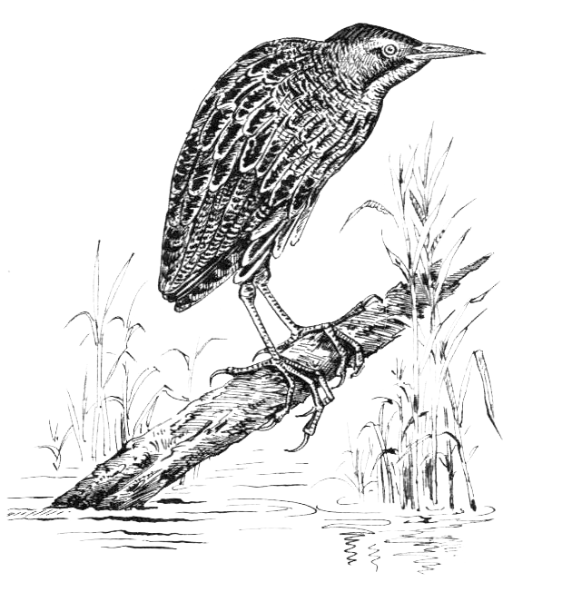 На заболоченных лугах, болотах с зарослями тростника обитает большая выпь. Эта птица несколько крупнее утки. У нее большая голова и длинный массивный клюв, толстая шея, ноги с длинными пальцами. Окраска оперения рыже-бурая с поперечными и продольными темными пестринами.