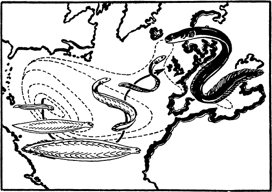 Оставалось выяснить, откуда попадают лептоцефалы к берегам Европы. Этим вопросом занялся датский ихтиолог И. Шмидт. Прежде всего предстояло найти место, где встречаются самые маленькие личинки. С 1904 по 1913 год под руководством И. Шмидта было организовано несколько экспедиций. В результате удалось установить, что лептоцефалы появляются из юго-западного угла Атлантического океана.