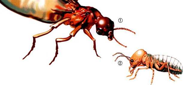 Каждый термитник — одна семья, состоящая порой из миллиона насекомых. Возглавляет эту орду единственная самка — «царица». Она работает десятилетиями, как живая фабрика по производству яиц, — откладывает их от восьми до десяти тысяч в сутки! Ее и сам термитник охраняют солдаты, относящиеся к нескольким «родам войск». Одни вооружены мощными челюстями — мандибулами. По сравнению с телом солдата они так велики, что ему мешают самостоятельно питаться. Таких солдат кормят рабочие термиты. Другие солдаты обладают средствами «химической атаки» — из особых выростов на голове они выбрызгивают едкую и остро пахнущую жидкость. У некоторых видов термитов есть даже солдаты-самоубийцы. У этих камикадзе во время атаки мышцы брюшка так сильно сокращаются, что буквально разрывают его на части. В противника летят внутренности и содержимое кишечника.