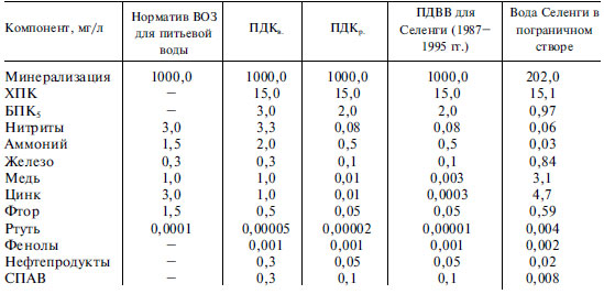 Таблица 8.3 Нормативные и фактические значения отдельных компонентов воды Селенги в пограничном створе
