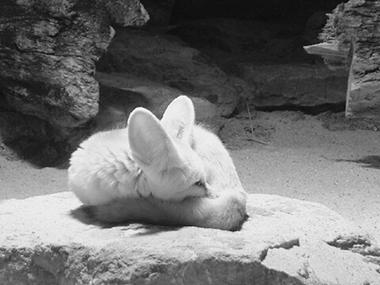 Фенек – обладатель больших, широких ушей, длина которых варьируется от 12 до 16 см. Защитная окраска делает его невидимым среди пустынных песков, а мягкие лапки с опушенными подошвами позволяют бесшумно передвигаться в поисках пищи – насекомых, ящериц, некрупных птиц и грызунов.