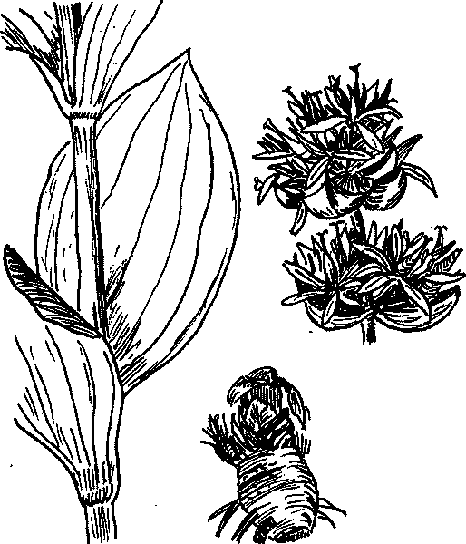 Рис. 48. Чемерица обыкновенная (справа вверху — цветочная кисть, внизу — цветок).